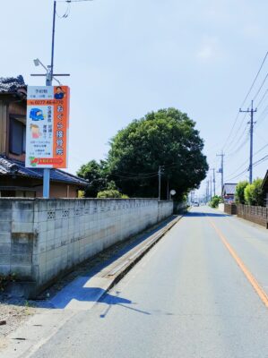 *大間々方面から藪塚方面へ南下する場合は、左側に看板が見えてきます。